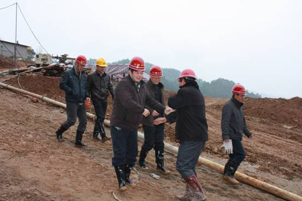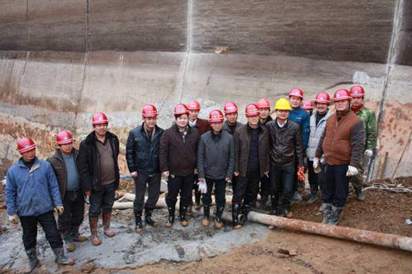 董事長(zhǎng)、總經(jīng)理王元旦一行首先來到基坑澆筑、混凝土攪拌站等施工現(xiàn)場(chǎng)進(jìn)行察看,與施工人員一一握手,并聽取了春節(jié)期間帶領(lǐng)員工奮戰(zhàn)在施工一線的公司副總經(jīng)理聶玉和的生產(chǎn)情況匯報(bào)。董事長(zhǎng)、總經(jīng)理王元旦詳細(xì)詢問了攪拌站的生產(chǎn)能力能否滿足施工要求,工程的進(jìn)展情況及后期施工中的各項(xiàng)措施,對(duì)項(xiàng)目部全體員工放棄節(jié)假日搶工期、保質(zhì)量、抓進(jìn)度的奉獻(xiàn)精神給充分肯定和高度評(píng)價(jià),他勉勵(lì)大家保證質(zhì)量安全的前提下,抓緊時(shí)間完成大壩防滲面板的施工、再苦再累也要咬緊牙關(guān)挺過去,并要求施工項(xiàng)目部合理安排好大家春節(jié)期間的工作和生活。