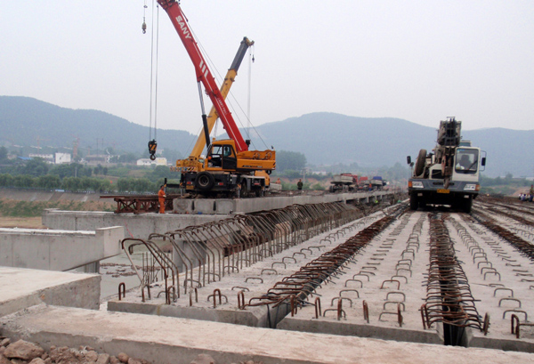 我公司2010年承建的大型市政災后重建工程——四川省鹽亭縣梓江河橋閘工程,由兩座長270M,寬11.5M的橋梁夾一座大型水閘構成。水閘全長202M,13孔×12M寬,采用6M×12M大型平板閘門,水閘50年一遇洪水下泄流量為7260M3/S,屬于大(I)型水閘項目工程。鹽亭縣梓江河橋閘工程現已按合同工期完工,正待驗收,它的建成將極大地提升鹽亭縣新城區“城在水中,水邊有城” 的新景象,成為鹽亭縣城市建設一道靚麗的風景線。