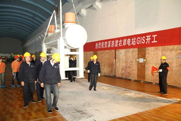 2012年7月,溪洛渡右岸電站500千伏GIS室第一臺斷路器吊裝就位,拉開了我公司在右岸電站開關站安裝的序幕。