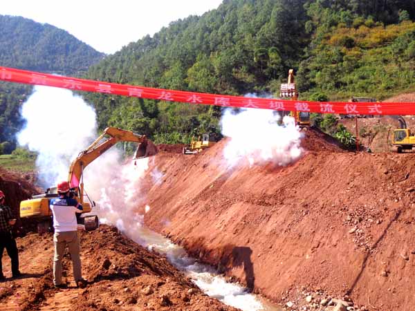 青龍水庫是一座供農業灌溉、灌區農村人畜飲用水、縣城供水為主的蓄水工程。水庫位于普洱市景東縣錦屏鎮、文龍鄉境內的龍樹河上,水庫樞紐由攔河壩、輸水隧洞、溢洪道組成。我公司于今年6月中標承建了大壩及溢洪道施工標,中標價1.1億元。青龍水庫大壩圍堰的成功截流,標志著該項目進入全面施工階段。