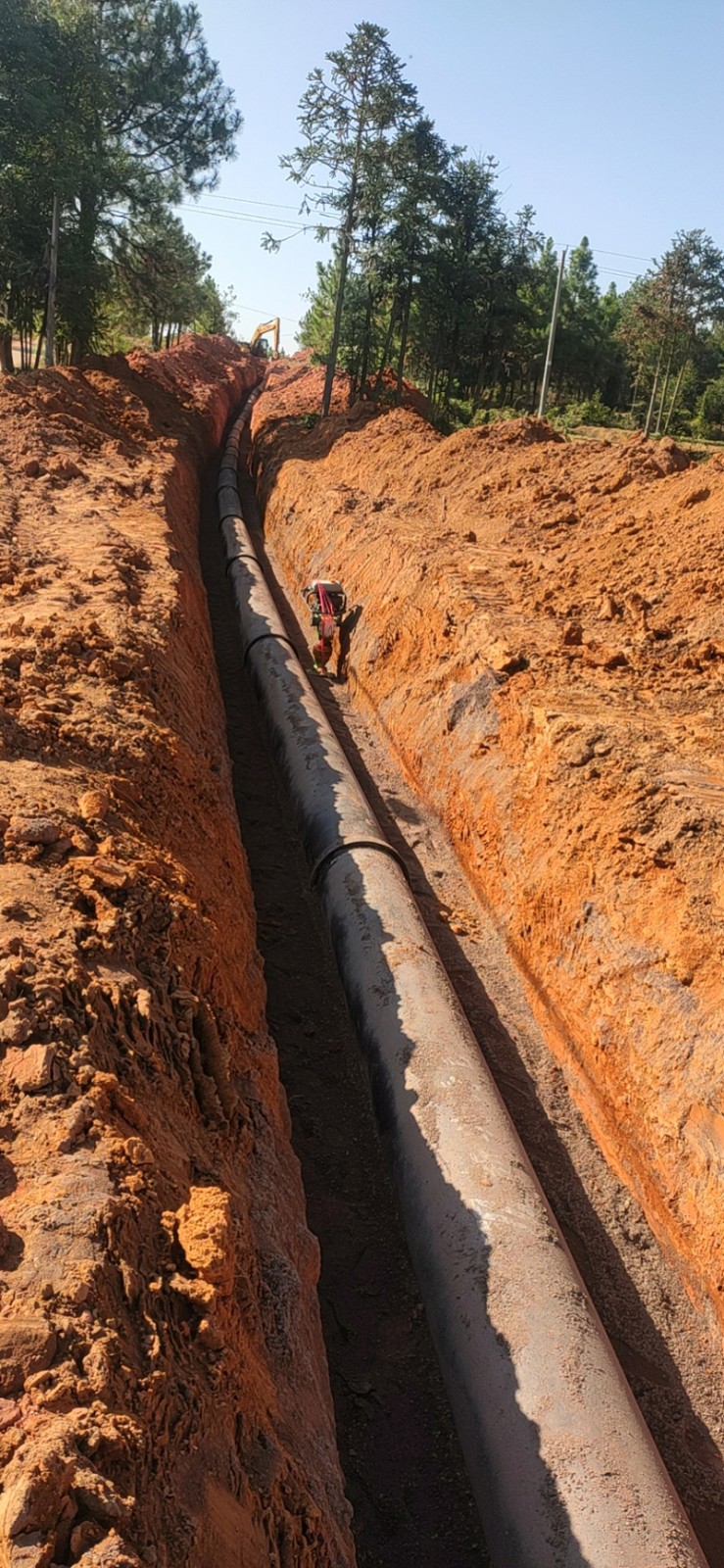 集團承建的鷹潭市余江區(qū)城鄉(xiāng)供水一體化一期項目南、北線供水主管網(wǎng)鋪設(shè)工程位于鷹潭市余江區(qū),主管總長75.3km,合同投資10473.3萬元,合同工期174天。該項目面臨時間緊,任務(wù)重等重重困難,為順利推進項目建設(shè),施工項目部人員爭分奪秒,晝夜奮戰(zhàn),抓住晴好天氣,搶抓施工進度,確保工程按時完工。