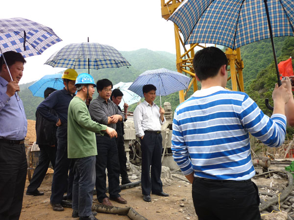 廖瑞釗副廳長在項目施工現(xiàn)場檢查施工生產(chǎn)情況,聽取了項目管理人員關(guān)于施工進度及質(zhì)量安全等工作匯報。當(dāng)他聽到泰和縣洞口水庫除險加固工程目前進展比較順利,主體工程已完成70%左右,計劃于2013年8月底項目全面完工時,廖瑞釗副廳長對工程的進展表示滿意,他要求參建各方再接再勵完成好下一步工作,全力配合,確保工程質(zhì)量和安全。