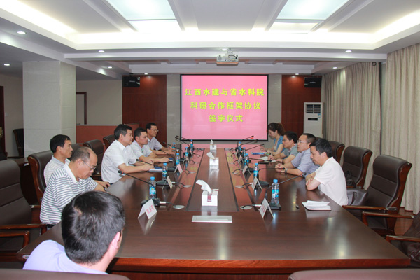 2013年9月3日,江西省水利水電建設有限公司與江西水利科學研究院簽訂了科研合作框架協(xié)議。公司董事長兼總經(jīng)理王元旦、省水科院院長方少文代表雙方單位在科研合作框架協(xié)議書上簽字。公司總經(jīng)濟師孫八根、紀委書記王延軍、副總經(jīng)理徐洪良,省水科院黨委副書記李洪任等出席簽字儀式。