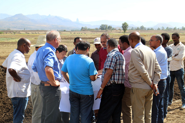 2016年3月20日,埃塞俄比亞聯(lián)邦水利能源部部長Motuma Mekesa閣下及副部長Kebede Gerba閣下帶領水利能源部尼羅河灌溉項目協(xié)調辦、阿姆哈拉州土地管理局、阿姆哈拉州尼羅河灌溉項目協(xié)調辦等項目各參建單位負責人到我公司承建的埃塞俄比亞Ribb一期灌溉項目視察。