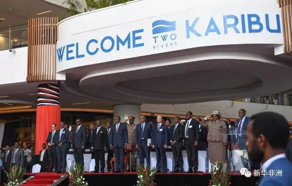 肯尼亞總統肯雅塔(前排中)為雙河商城正式開業剪彩