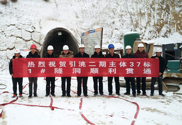 期間,徐洪良總經理一行與業主、設計、試驗檢測、監理等單位的領導頂著鵝毛大雪,參加了37標1#隧洞貫通儀式。