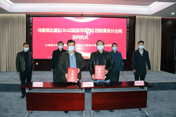 2月28日,我公司與江西省水利規(guī)劃設(shè)計(jì)研究院正式簽訂埃塞俄比亞kuraz溢流壩項(xiàng)目勘察設(shè)計(jì)合同。省設(shè)計(jì)院黨委書記江凌,副院長(zhǎng)、黨委委員柯勁松,公司黨委書記、董事長(zhǎng)王元旦,海外公司執(zhí)行董事張周平等領(lǐng)導(dǎo)出席簽約儀式。