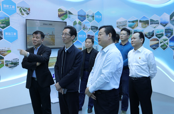 首先,王元旦董事長陪同曾亞東一行參觀了公司企業展廳。通過介紹,來賓對公司60多年來的發展歷程、建設成果、多業務領域取得的成績以及企業文化等進行詳細了解,并對公司 “健行天下,堰筑大同”的治企理念、創新創業精神及公司取得的業績給予了高度贊賞。