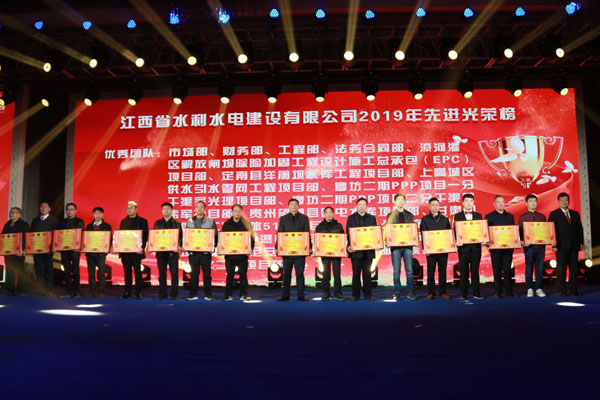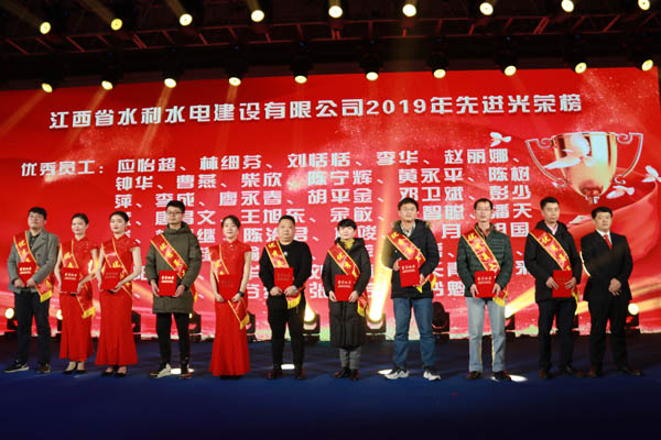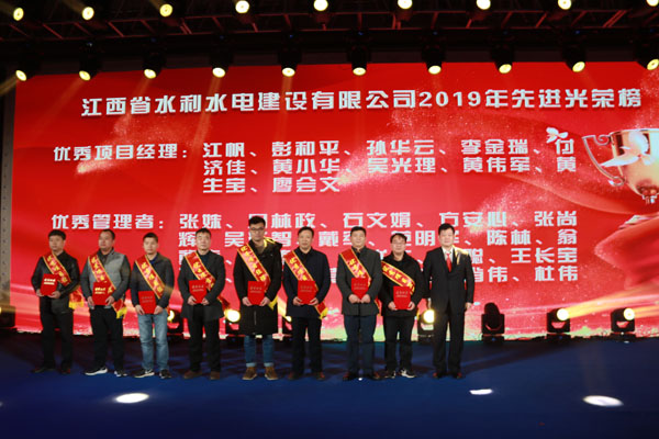 隨后,公司董事長王元旦等領導向潦河灌區解放閘壩除險加固工程設計施工總承包(EPC)項目、盧旺達RUSUMO瀑布水電站項目等16個優秀團隊,彭和平、黃生寶等10位優秀項目經理,張姝、張聰等20位優秀管理者和應怡超、程春鋒等40位優秀員工予以表彰。感謝他們在過去的2019年為江西水建發展所作出的貢獻。