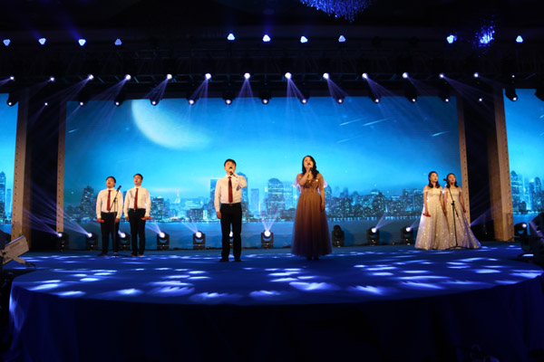 隨后,晚會演出在舞蹈《花開富貴》中拉開帷幕,歌曲聯唱,獨唱,舞蹈,詩朗誦、魔術、大合唱等文藝節目輪番上演,整場演出精彩絕倫,高潮迭起。晚會前播放了《2019年工程巡禮》視頻、展現了工程建設是公司生存的命脈,質量與安全是公司發展的生命線;晚會中播放了《國內外員工拜年》視頻,豐富的表現形式展現了一年來公司取得的豐碩成果和公司員工在工作、生活中的點點滴滴,體現了江西水建人昂揚向上的精神面貌。