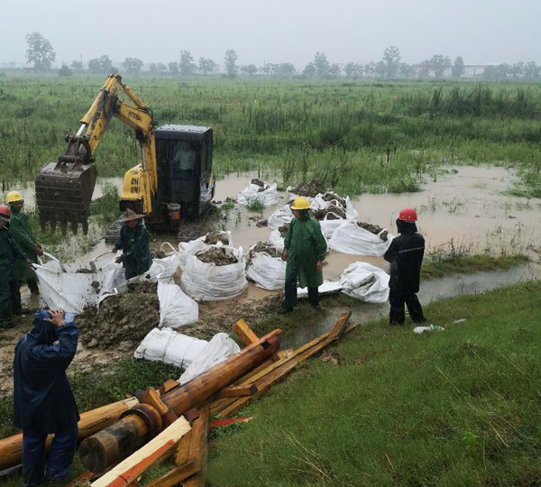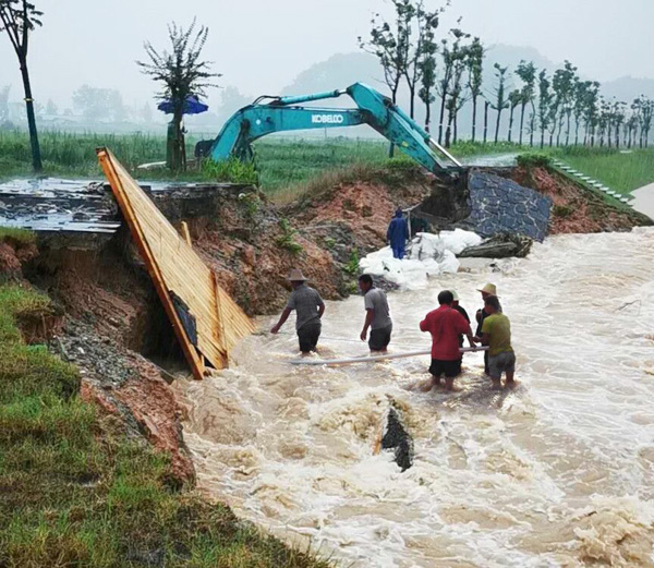 進(jìn)入7月以來(lái),昌江河流域普降暴雨,橋溪水河水位大漲。7月7日,公司接到業(yè)主汛情通報(bào),已完工驗(yàn)收工程多處出現(xiàn)險(xiǎn)情;汛情就是命令,時(shí)間就是生命,公司迅速組建了一支裝備精良、經(jīng)驗(yàn)豐富的專(zhuān)業(yè)搶險(xiǎn)突擊隊(duì),由副總經(jīng)理曾朝文、總經(jīng)理助理杜凌帶隊(duì),連夜奔赴浮梁抗洪一線(xiàn),組織設(shè)備、人員、材料進(jìn)場(chǎng),進(jìn)行搶險(xiǎn)救災(zāi)工作。